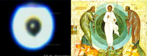 Do a Google search for ‘Transfiguration Icon’ and notice the similarities in the design or layout of the icon: Jesus in front of some sort of open vortex, with Moses on one side and Elijah on the other.