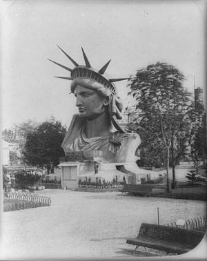 Various parts of the statue were on display throughout Paris as they were completed. For example Liberty’s head was exhibited in the gardens at the Tracadéro, and her torch was on display as well, as you can observe in the images below.