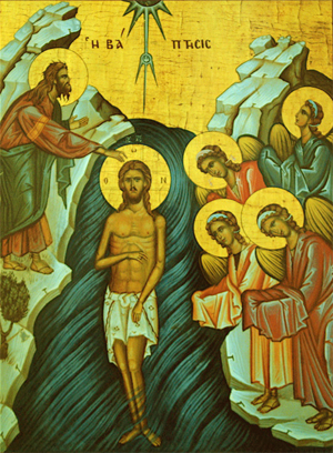 Let’s go back to the Baptism of Jesus for a minute and examine the iconography of the event that has been passed down through the ages: